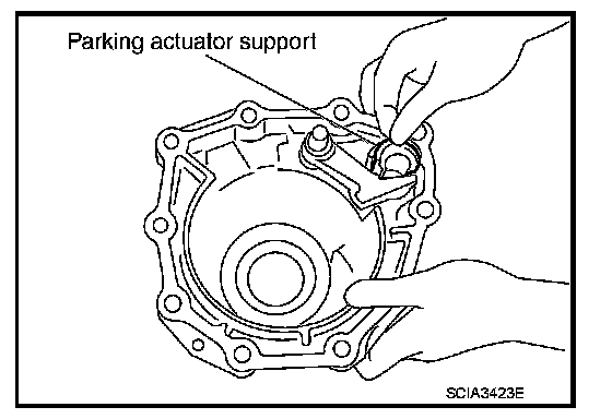 68. Remove parking actuator support from rear extension (2WD) or adapter case (AWD).