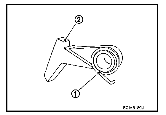 70. Remove return spring (1) from parking pawl (2).