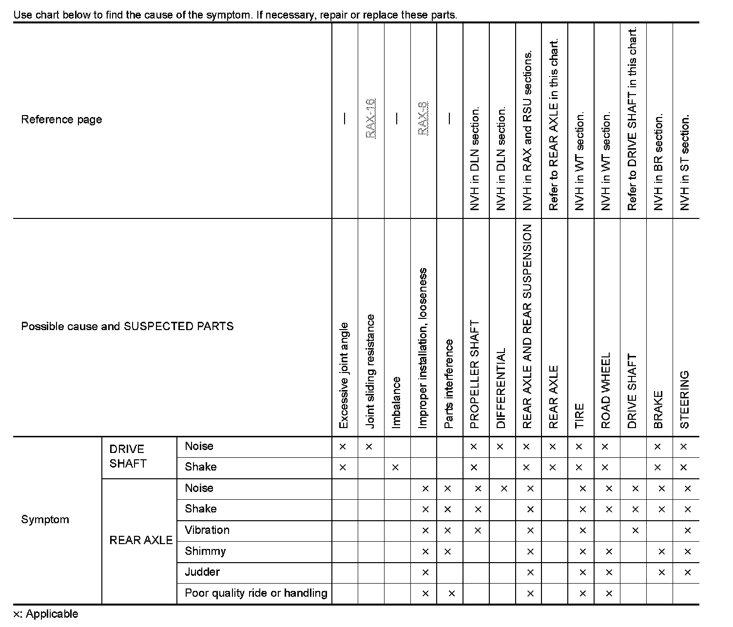 Rear Axle NVH Troubleshooting Chart