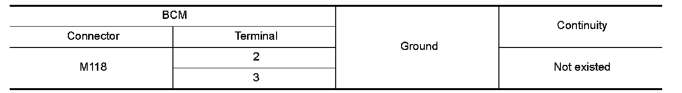 4. Check continuity between BCM harness connector and ground.