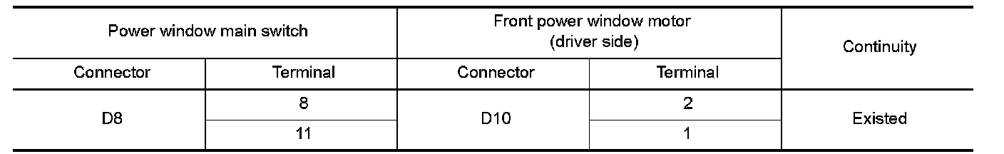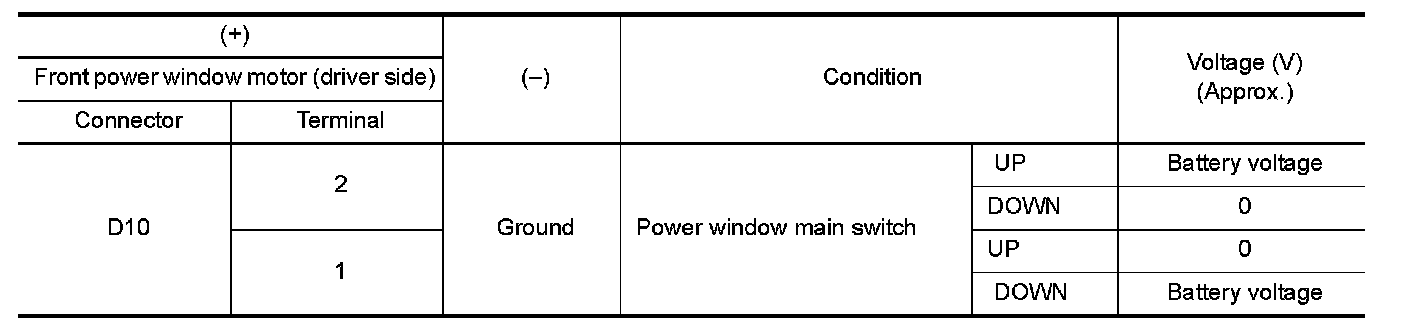 Check front power window motor (driver side). Refer to Component Inspection.