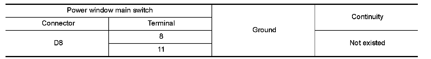 4. Check continuity between power window main switch harness connector and ground.