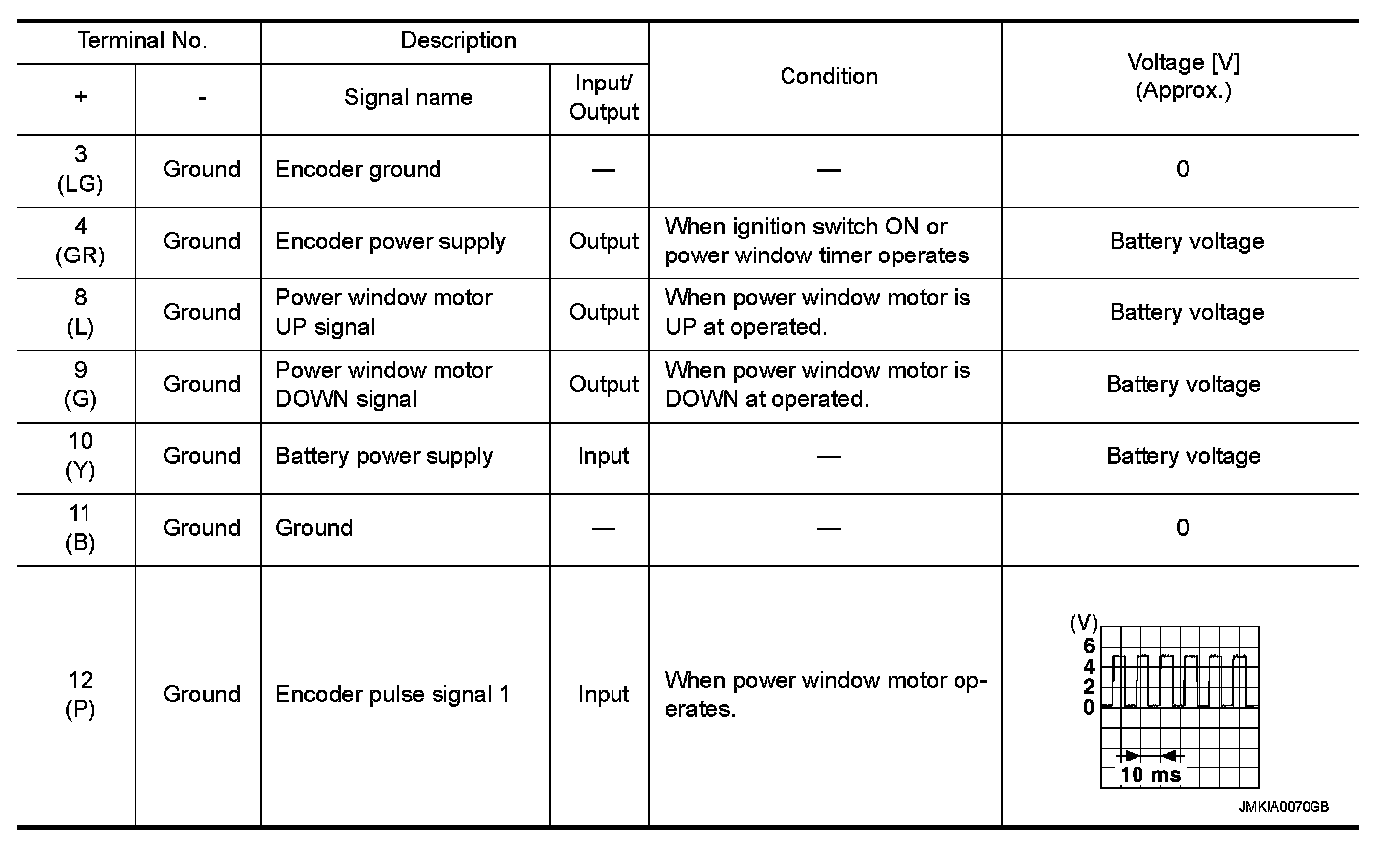 Pinout Values and Diagnostic Parameters