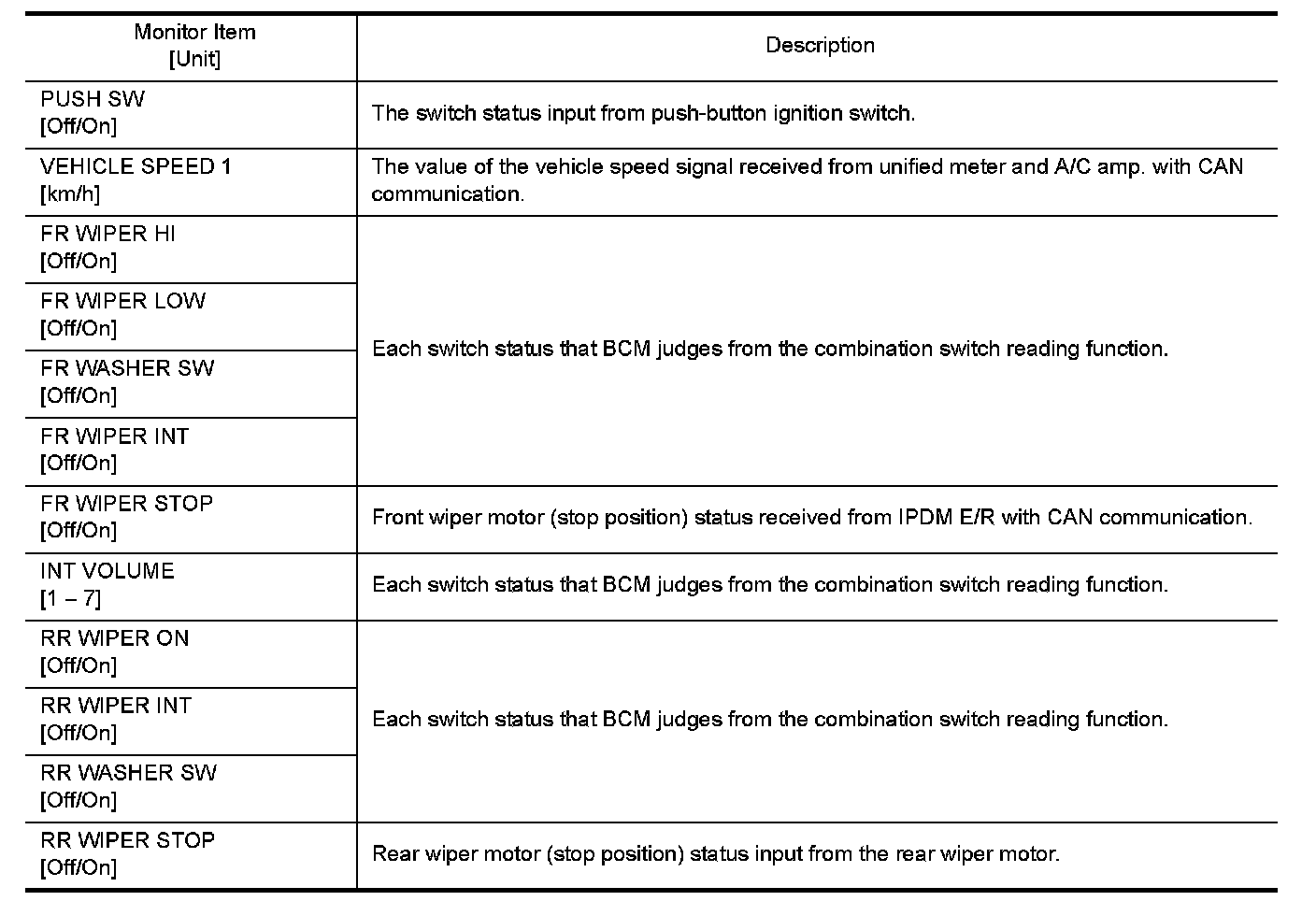 WIPER : CONSULT-III Function (BCM - WIPER)