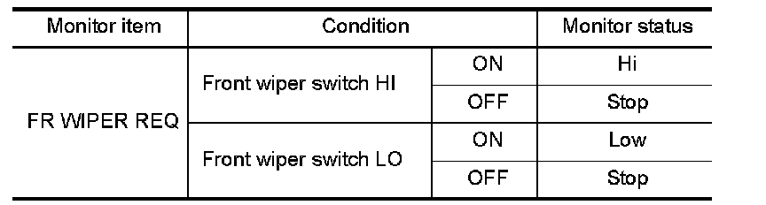 2. With operating the test item, check that front wiper LO/HI operation and OFF.