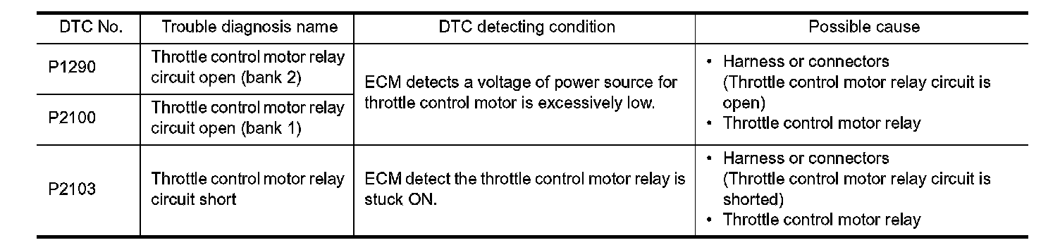 P1290, P2100, P2103 THROTTLE CONTROL MOTOR RELAY