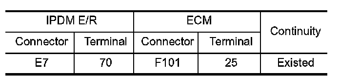 4. Check the continuity between IPDM E/R harness connector and ECM harness connector.