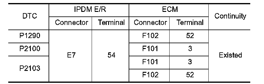 1. Check the continuity between IPDM E/R sensor harness connector and ECM harness connector.