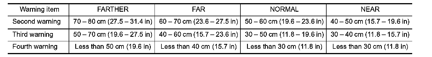 Corner sensor warning buzzer distance can be set to 4 phases as follows.