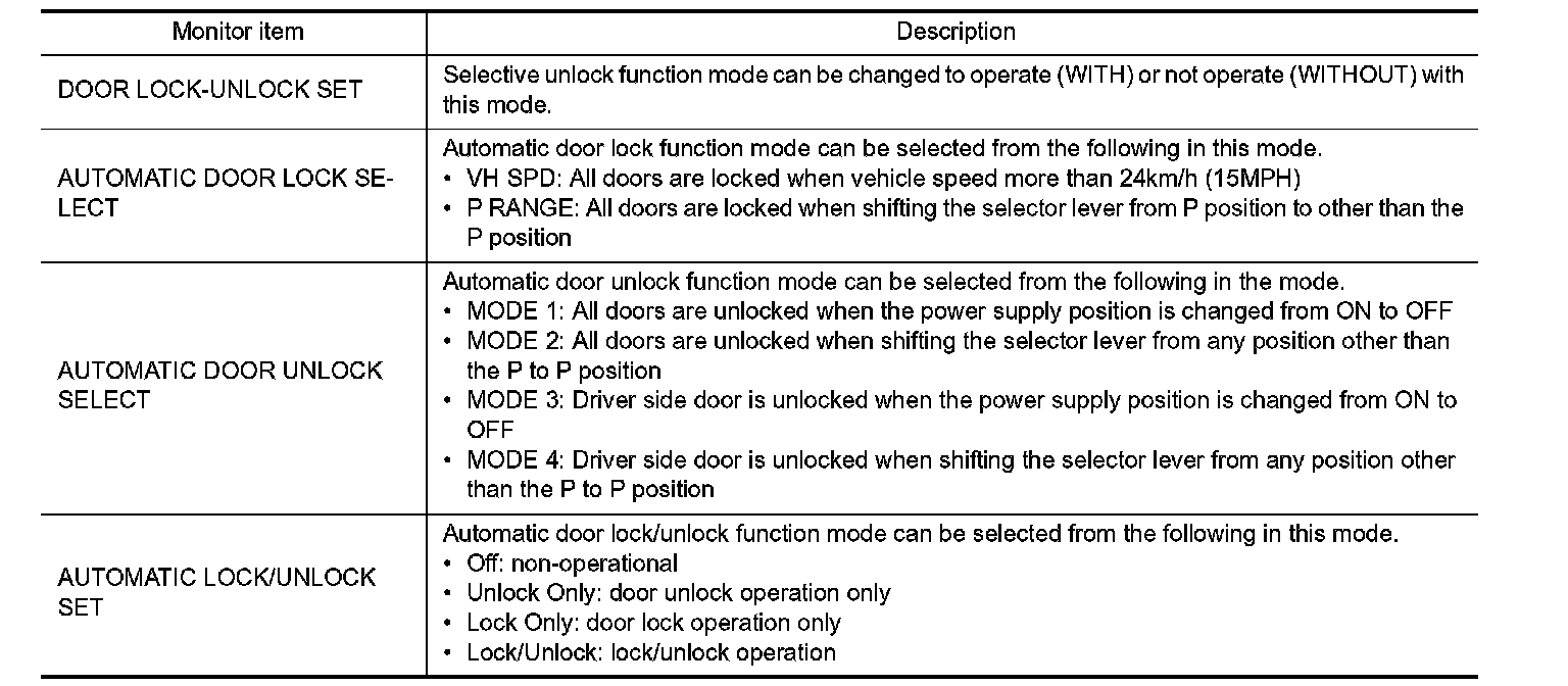 CONSULT-III performs the following functions via CAN communication with BCM.
