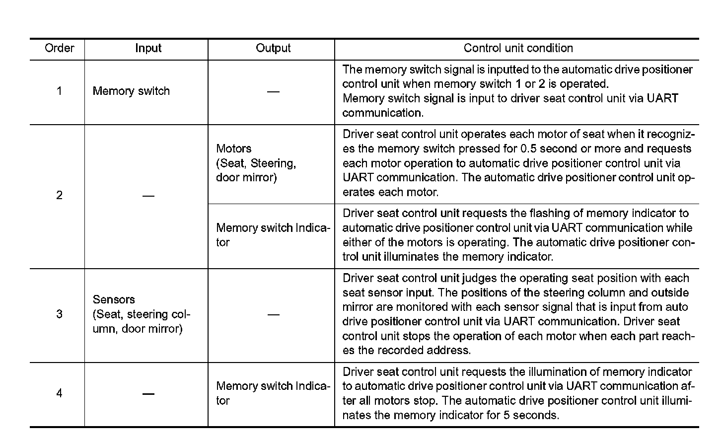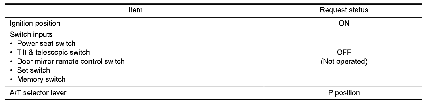 Satisfy all of the following items. The memory function is not performed if these items are not satisfied.
