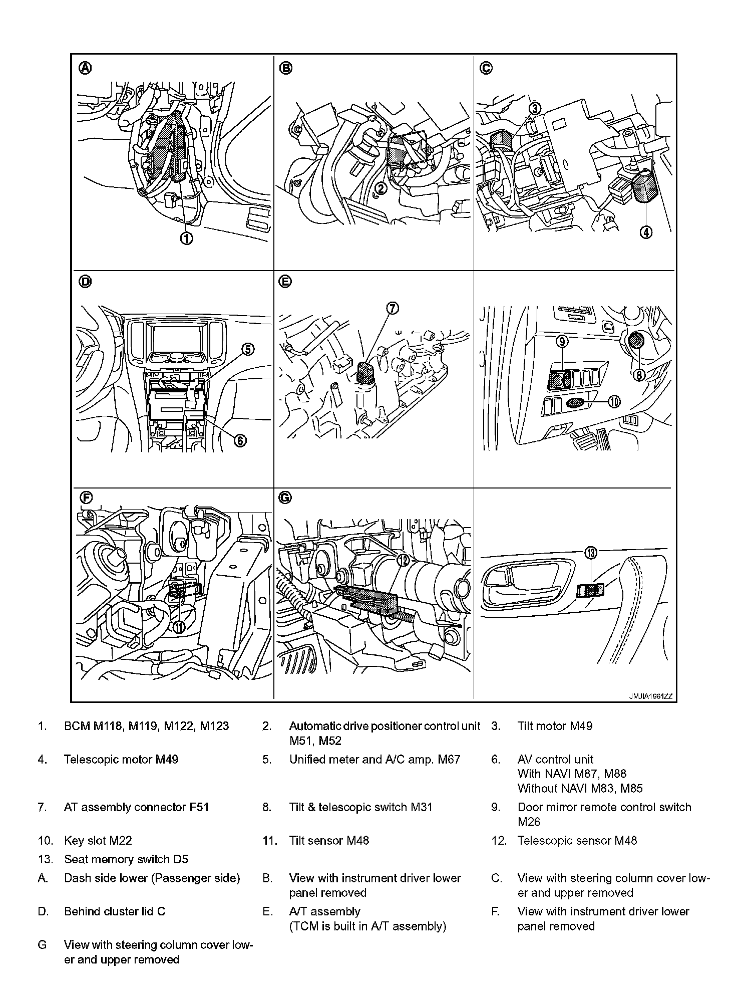 MEMORY FUNCTION : Component Parts Location
