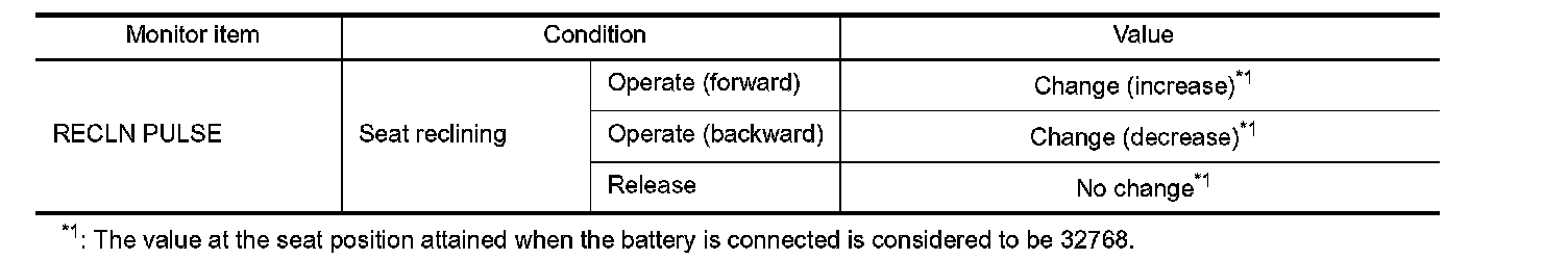 3. Check reclining sensor signal under the following conditions.