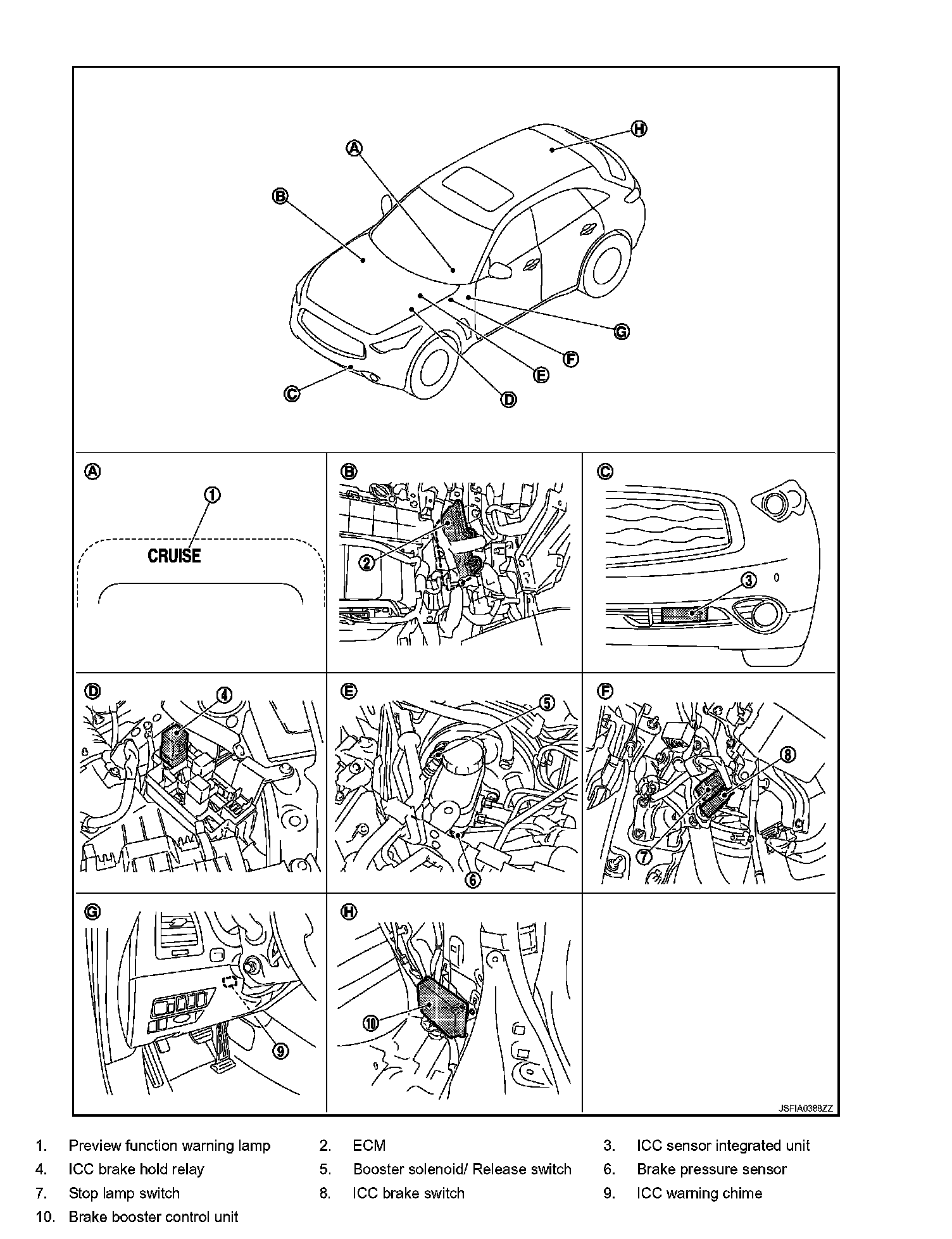 The preview function warning lamp shares the ICC system warning lamp.