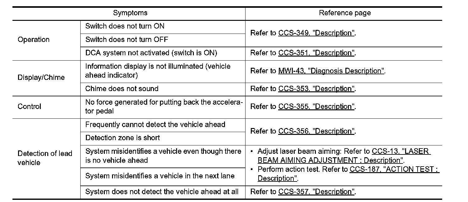 DISTANCE CONTROL ASSIST SYSTEM SYMPTOMS