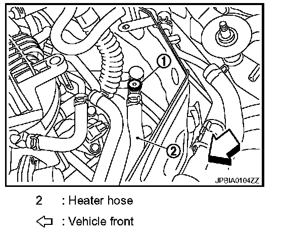5. Remove air relief plug (1) on heater hose.