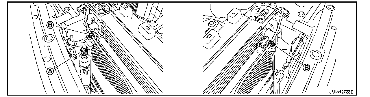 6. Disconnect refrigerant pressure sensor connector (A) and harness clips (B).