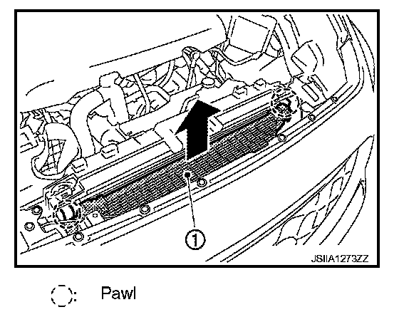 7. Pull condenser (1) upward of vehicle, and then remove condenser (as shown in the figure).