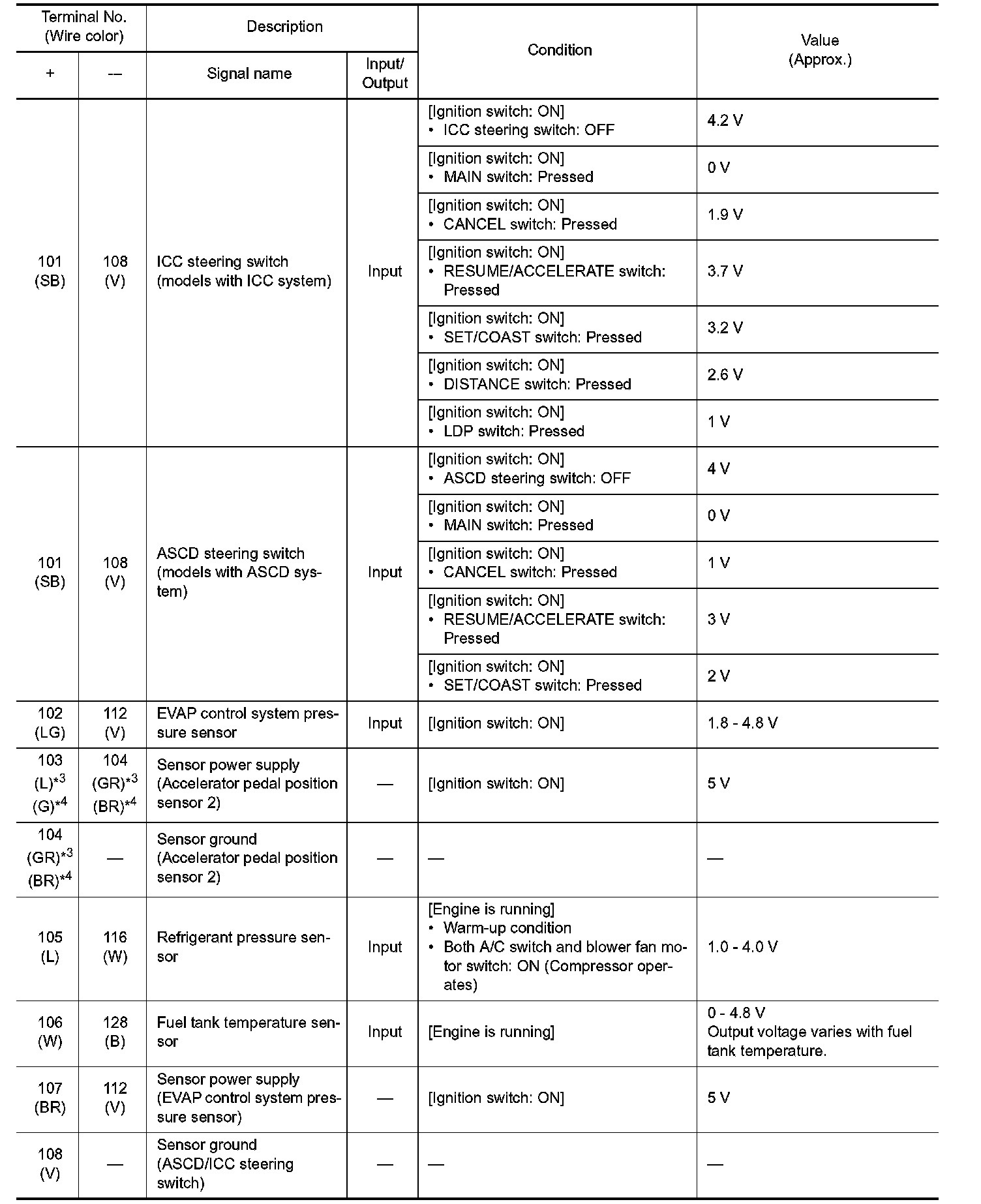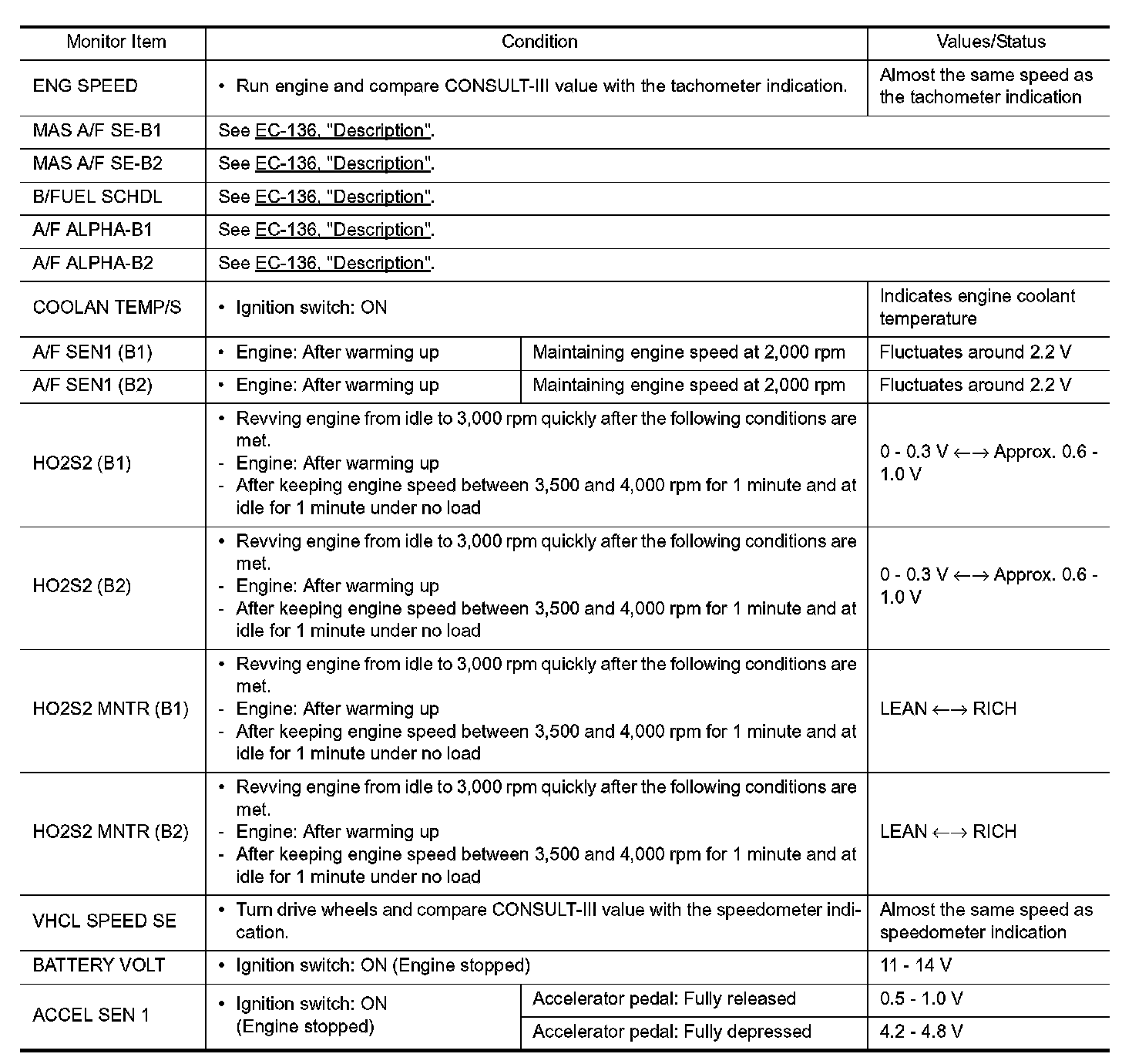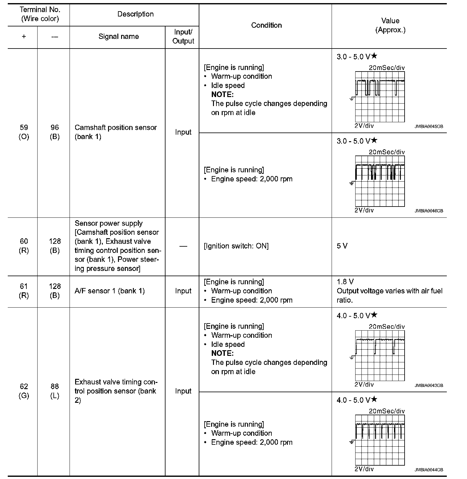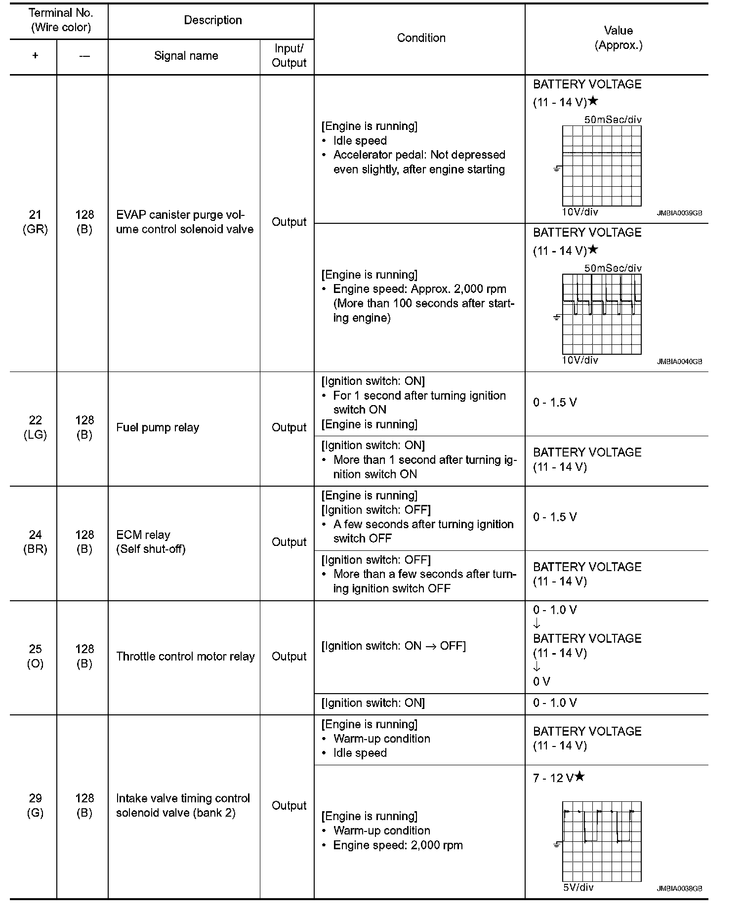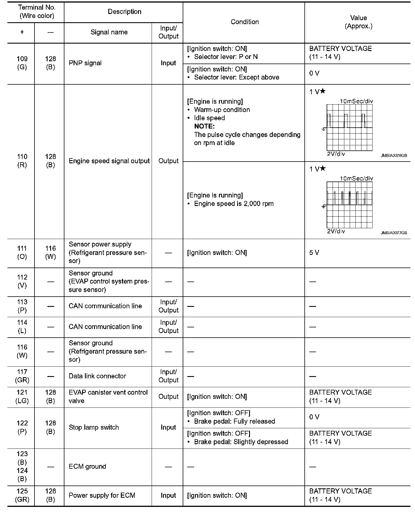 - Specification data are output/input values which are detected or supplied by the ECM at the connector.