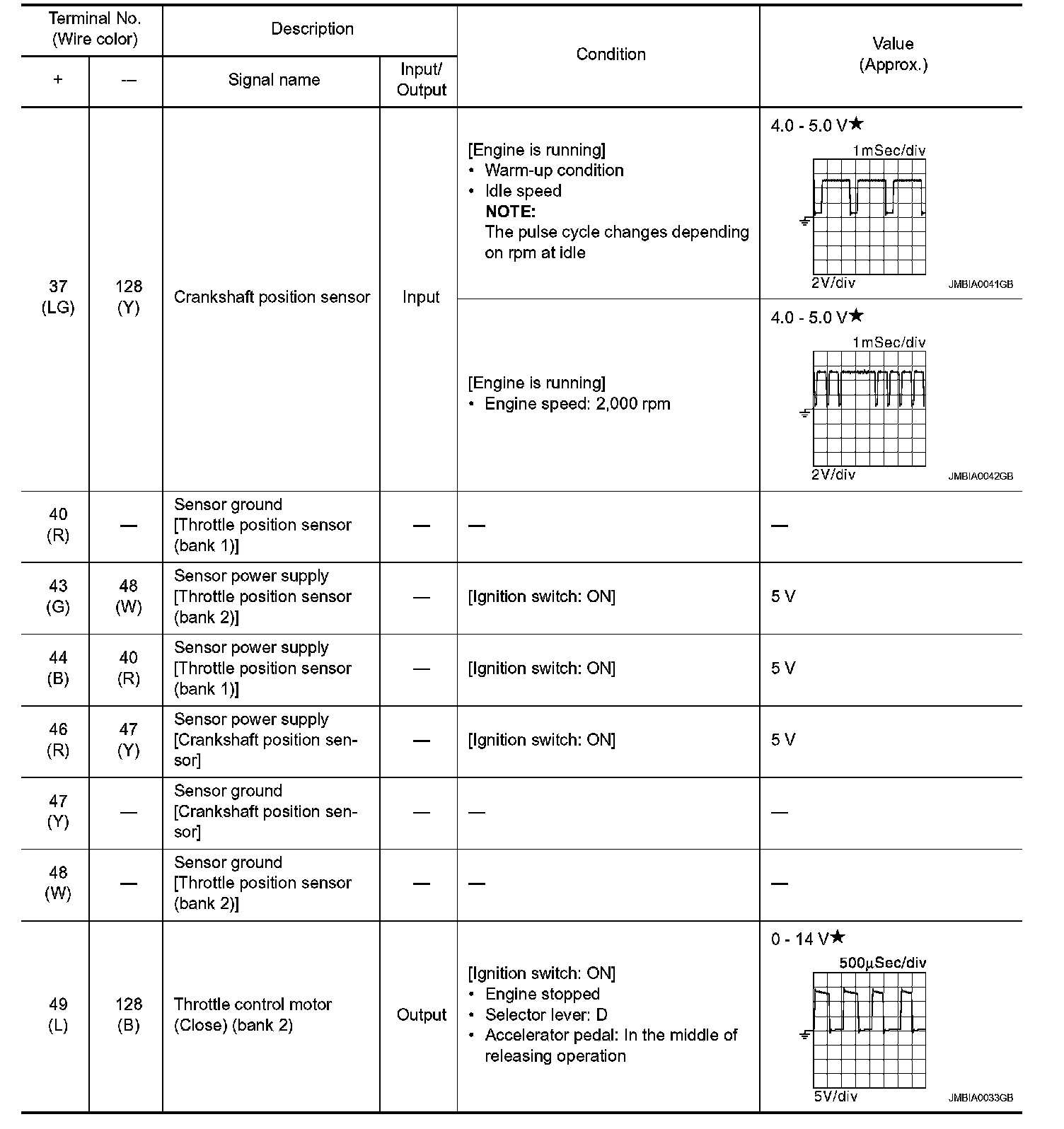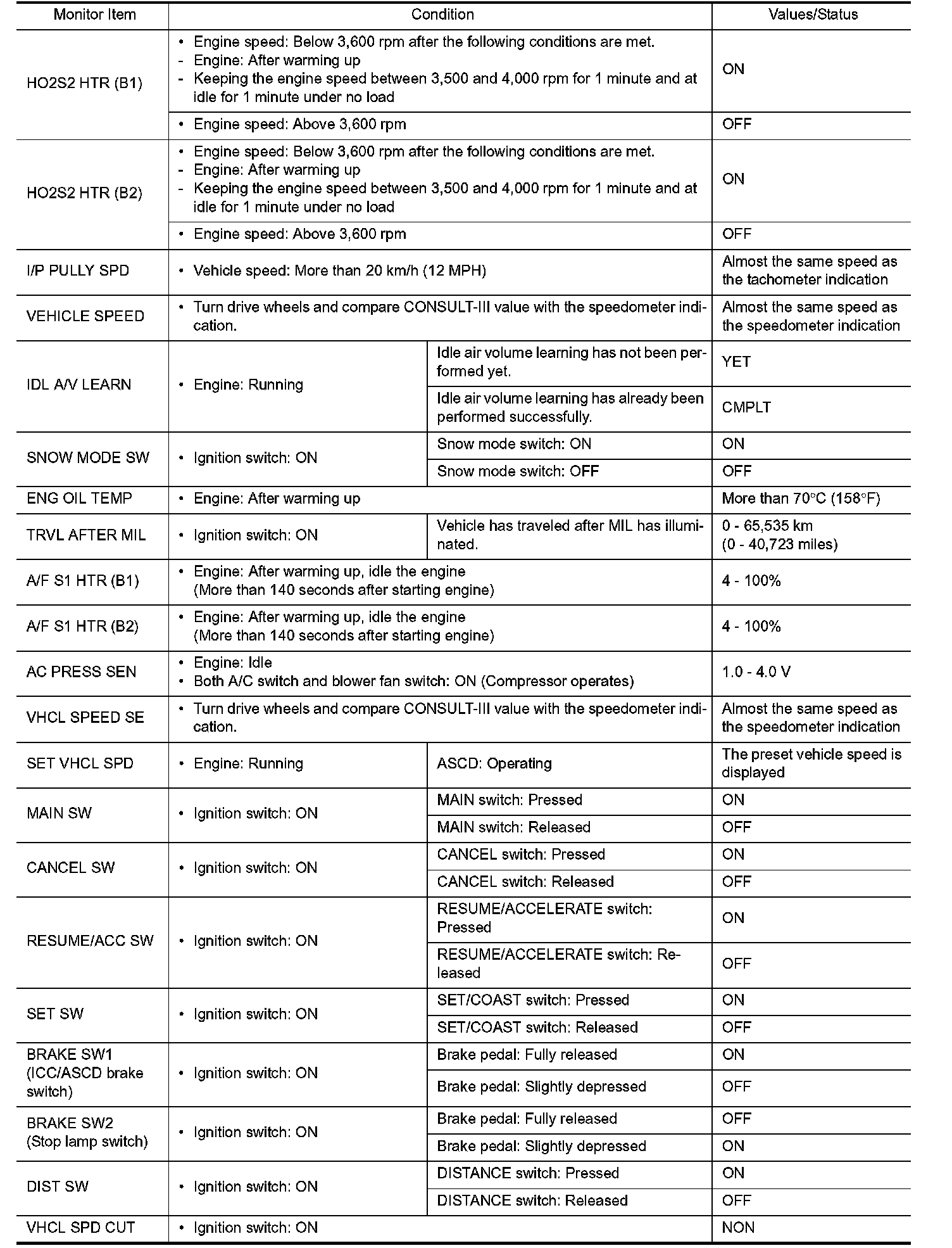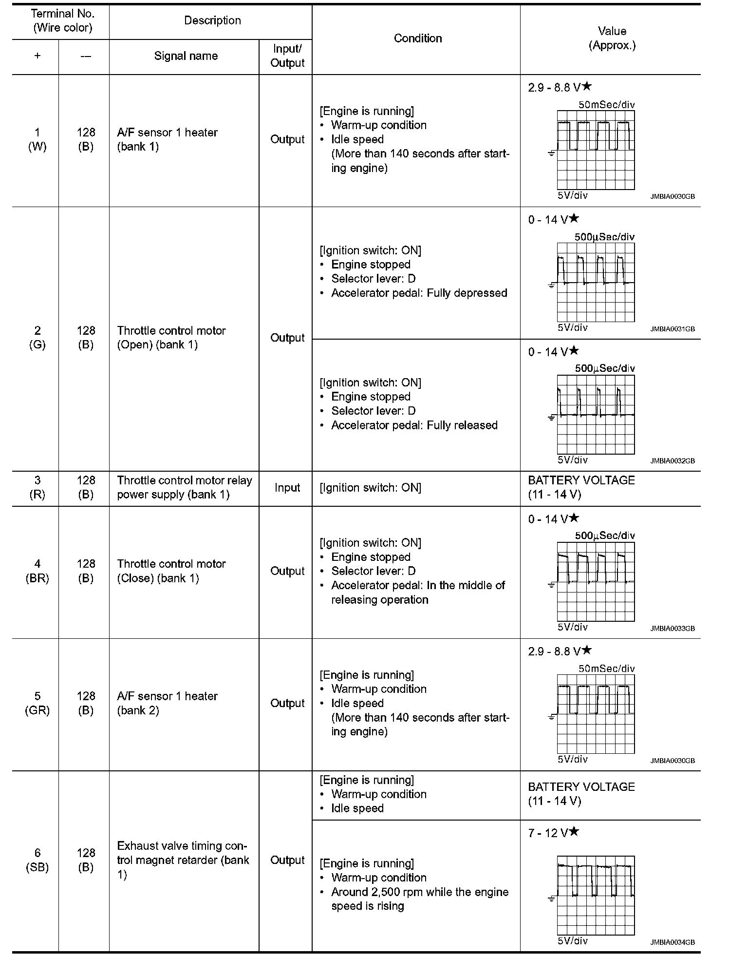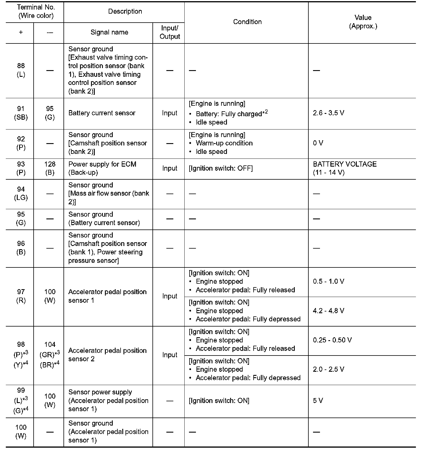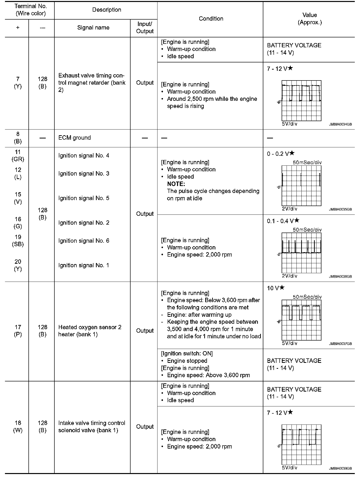 - Specification data are output/input values which are detected or supplied by the ECM at the connector.