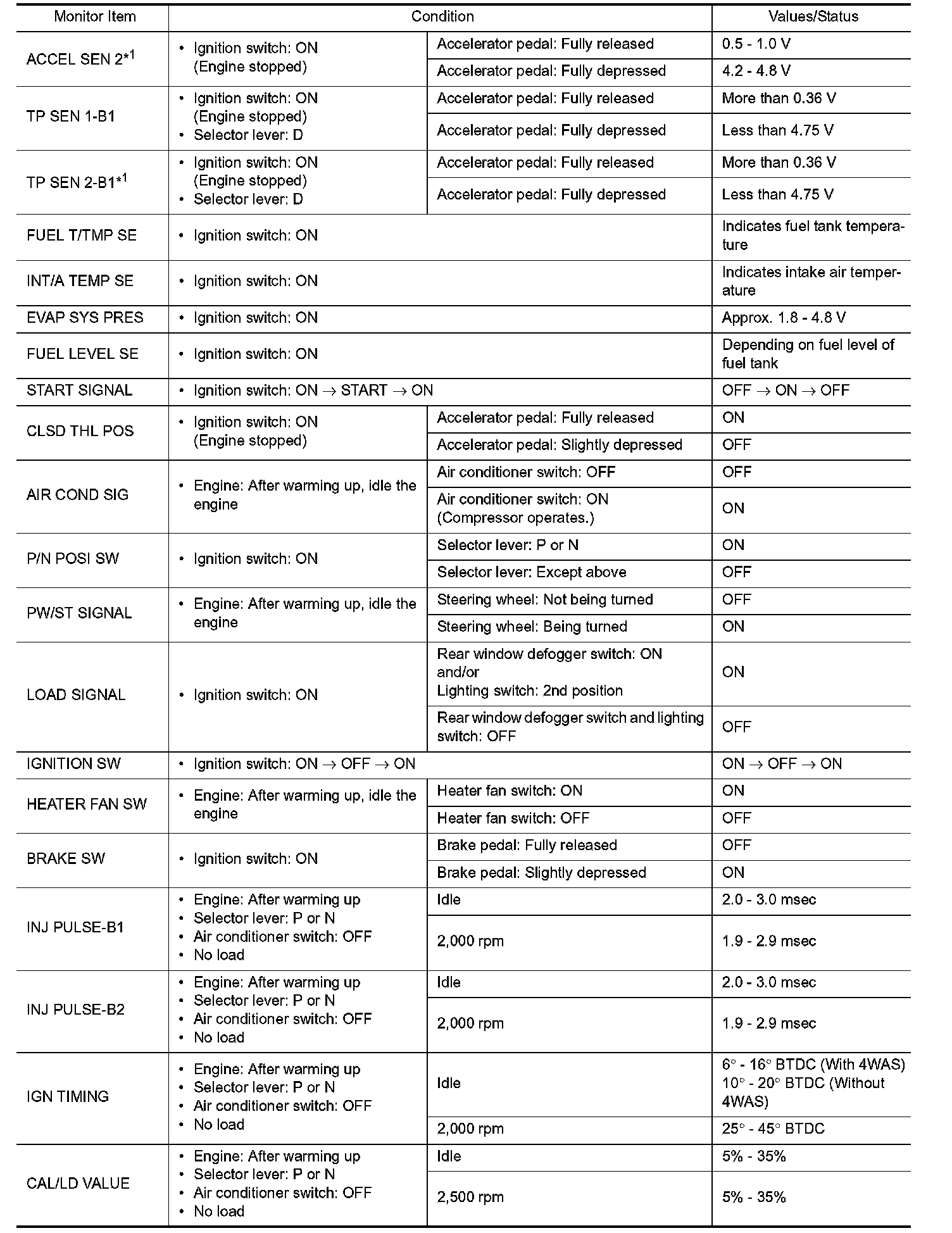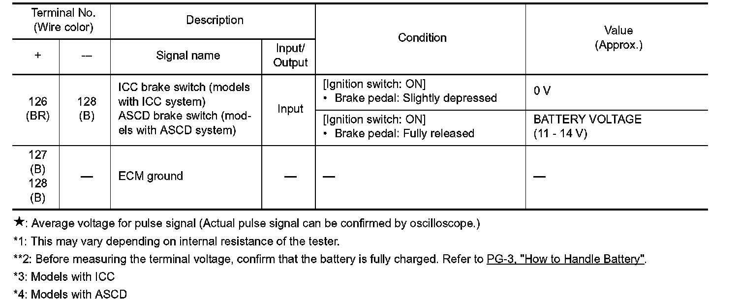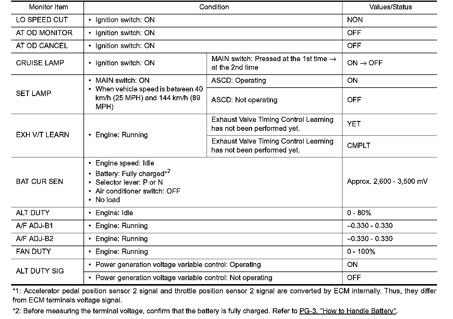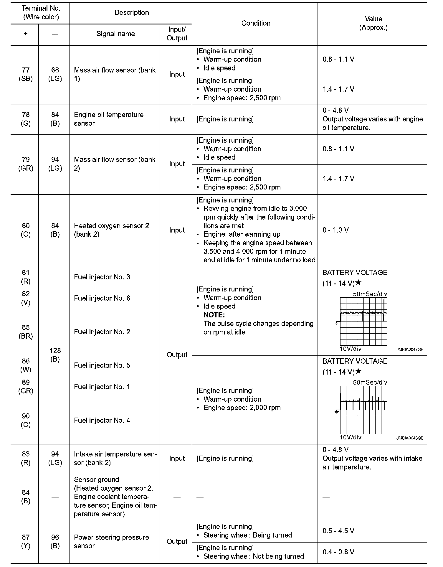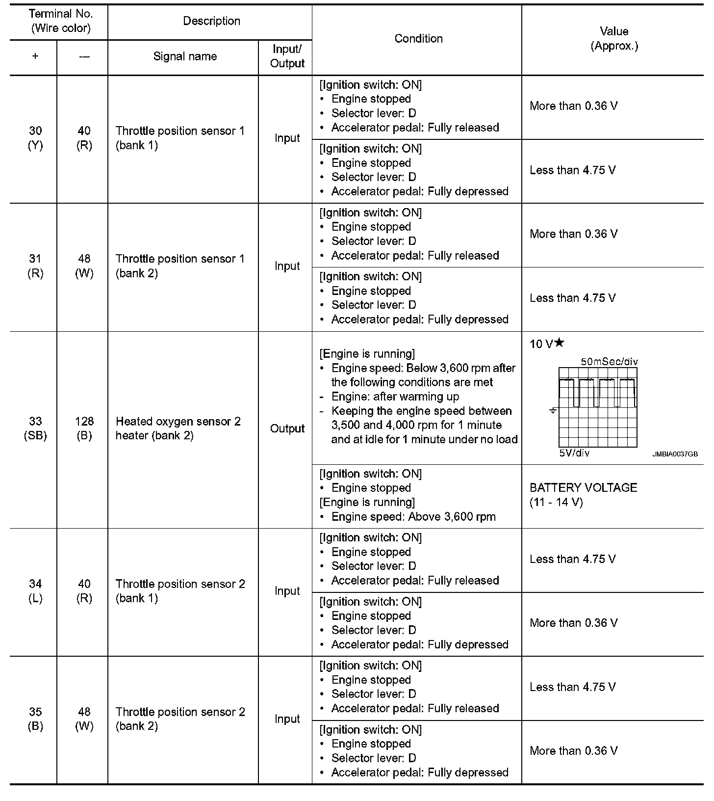 - Specification data are output/input values which are detected or supplied by the ECM at the connector.