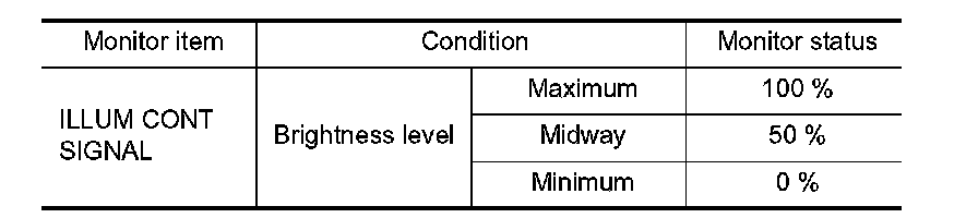 4. While operating the illumination control switch, check the monitor status.