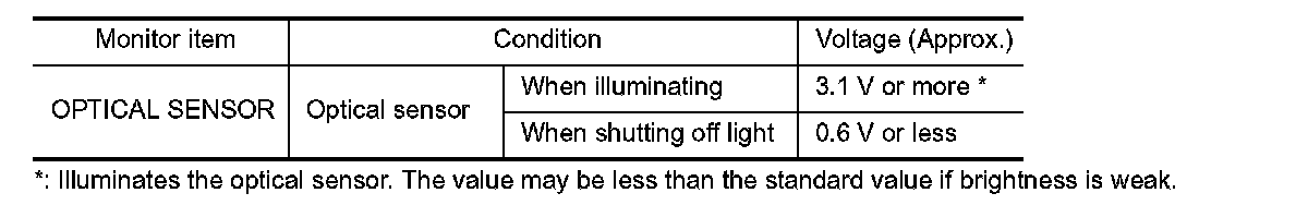 1.CHECK OPTICAL SENSOR SIGNAL BY CONSULT-III
