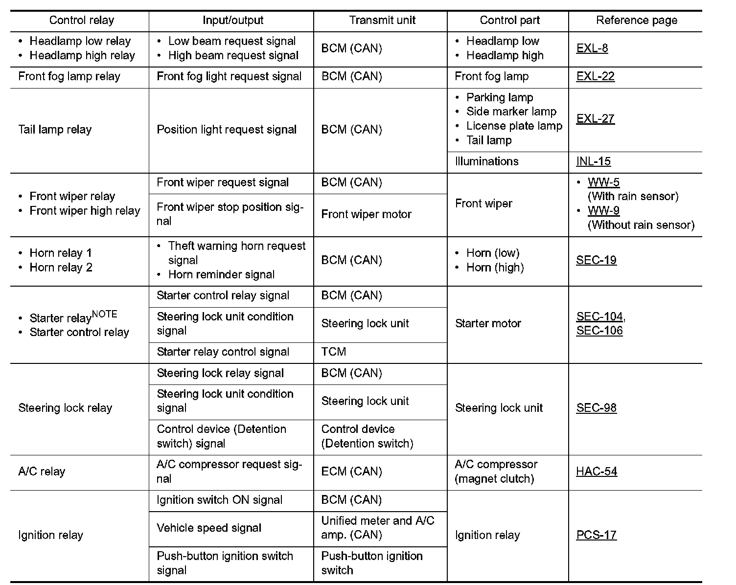 IPDM E/R activates the internal control circuit to perform the relay ON-OFF control according to the input signals from various sensors and the request signals received from control units via CAN communication.