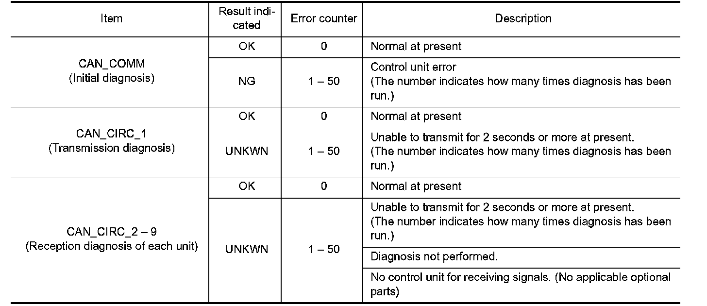For some models, CAN communication diagnosis result is received from the vehicle monitor.