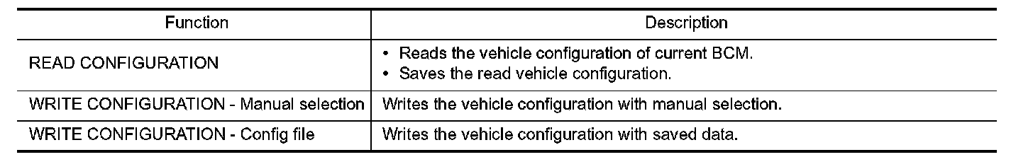 CONFIGURATION (BCM) CONFIGURATION (BCM) : Description
