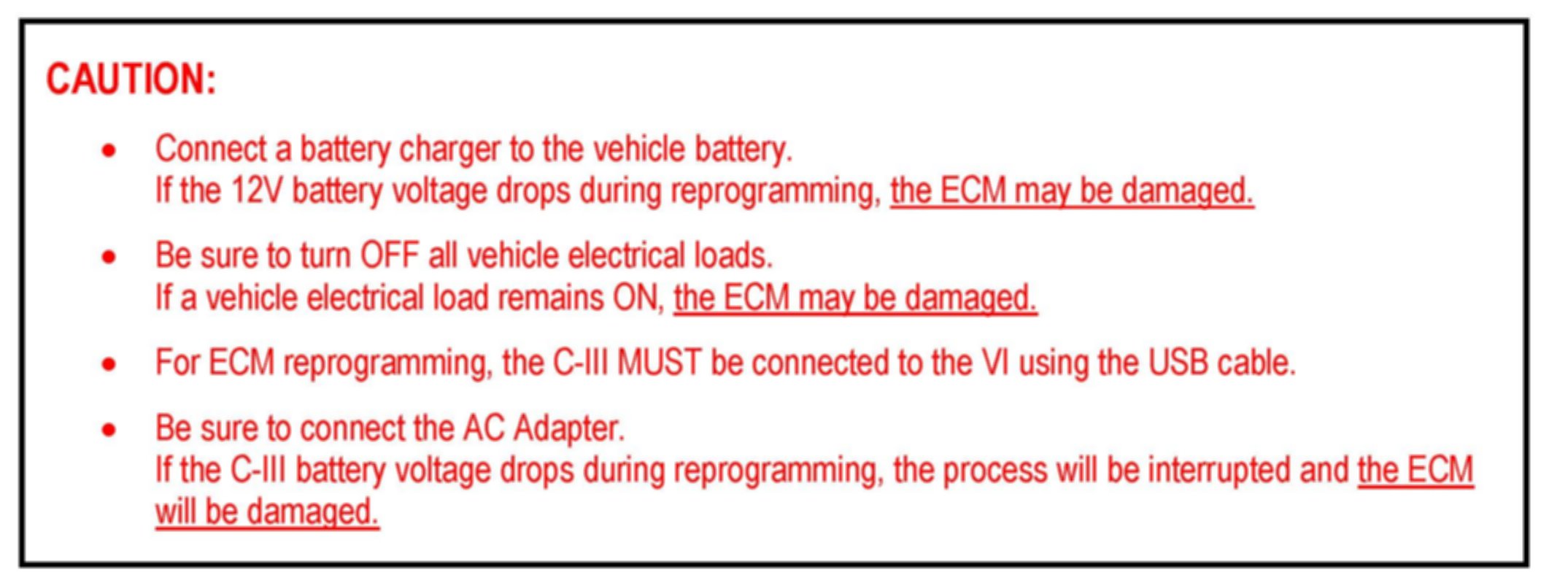 If there are two lines (two reprogramming options) on your C-III screen, use the one that does not have the message "Caution! Use ONLY with ITBXX-XXX".