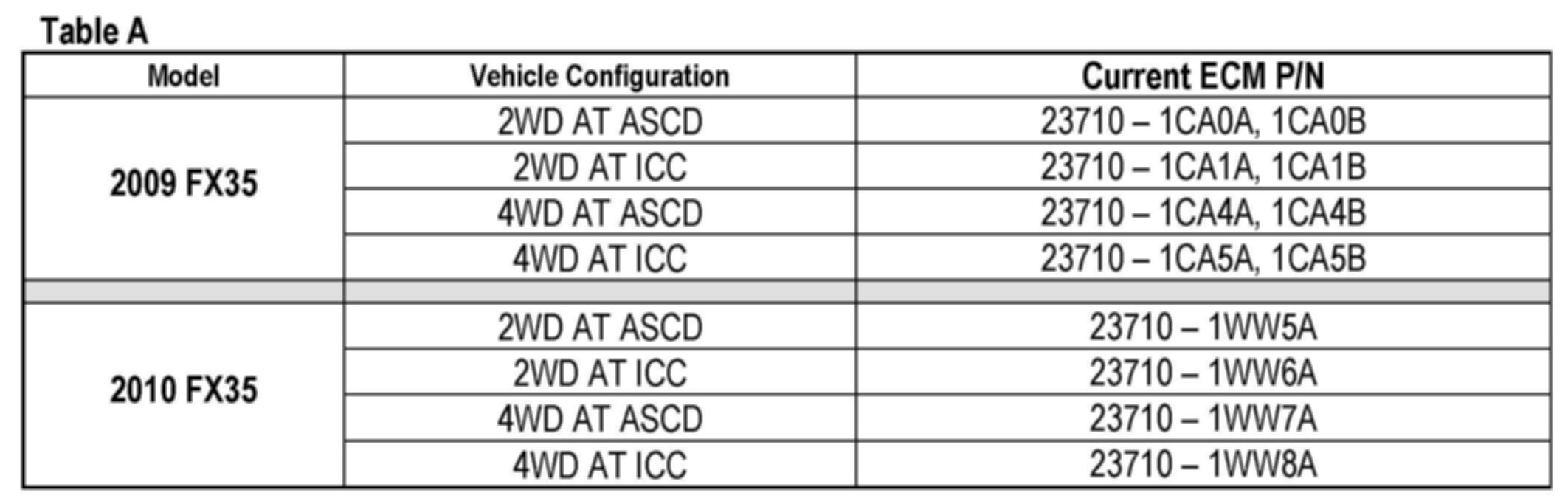 B. Compare the Part Number you wrote down to the numbers in the Current ECM Part Number column in Table A above.