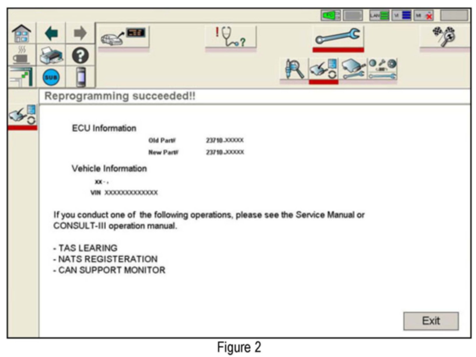 3. If this bulletin applies and you have performed ECM reprogramming, the screen in Figure 2 appears when reprogramming is complete.
