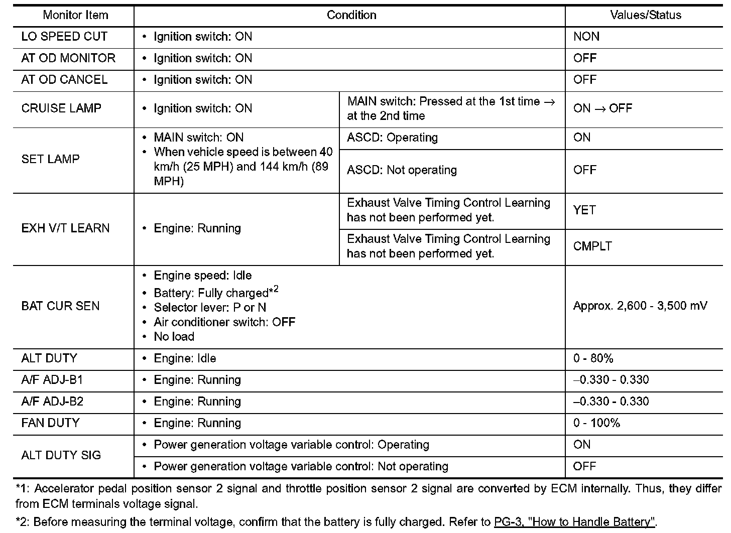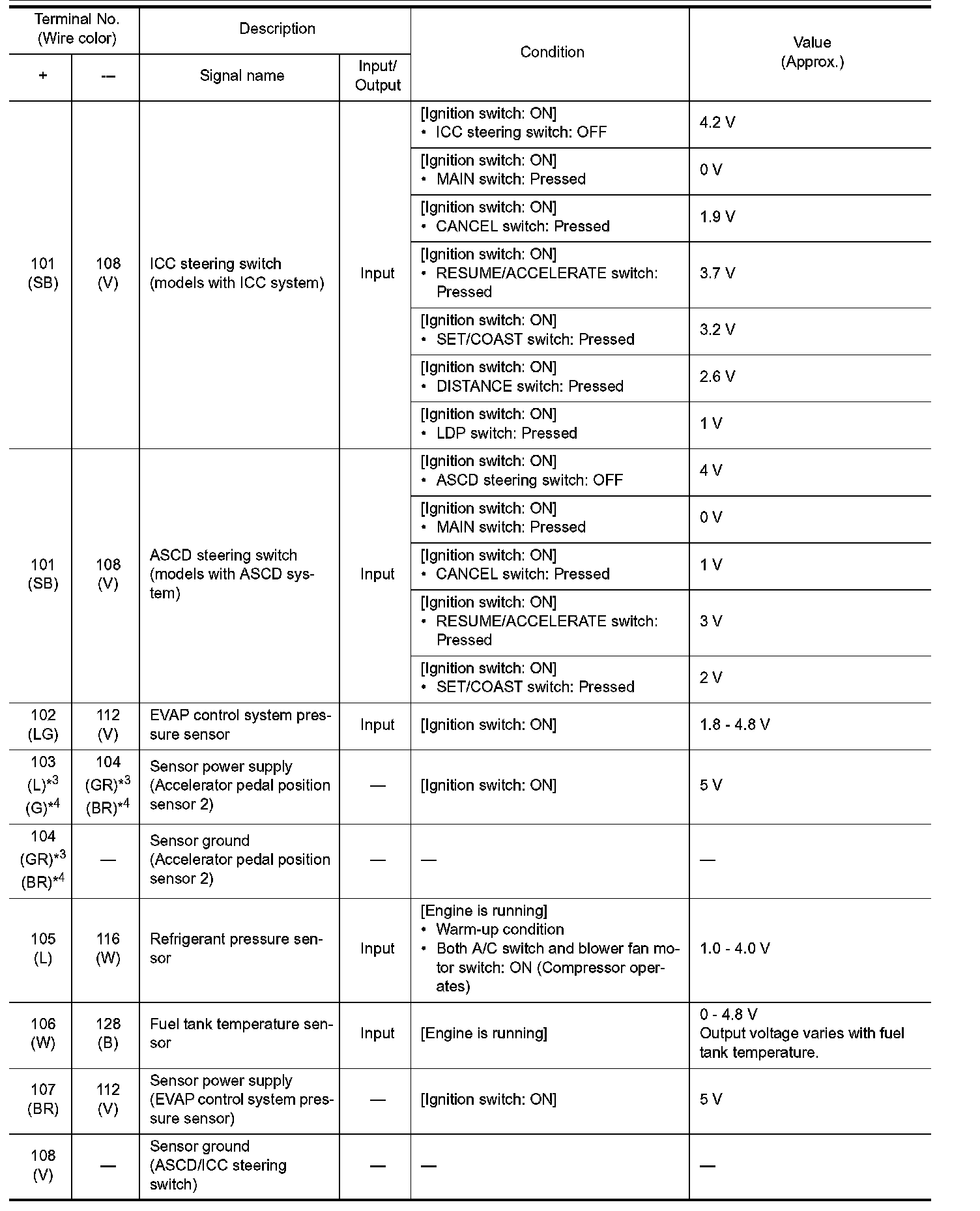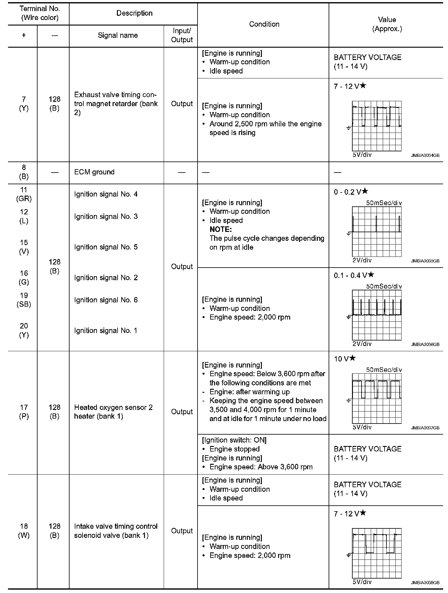 - Specification data are output/input values which are detected or supplied by the ECM at the connector.