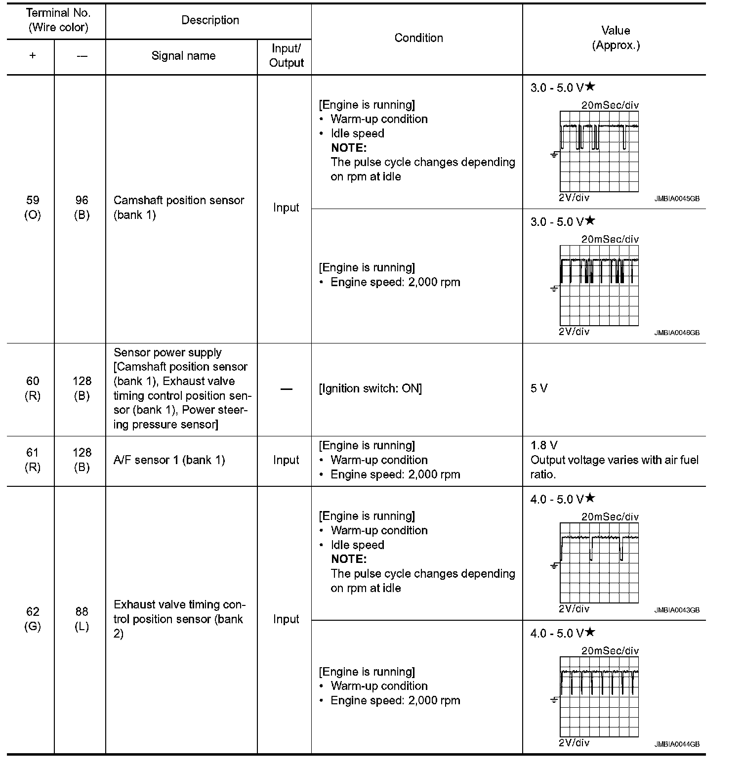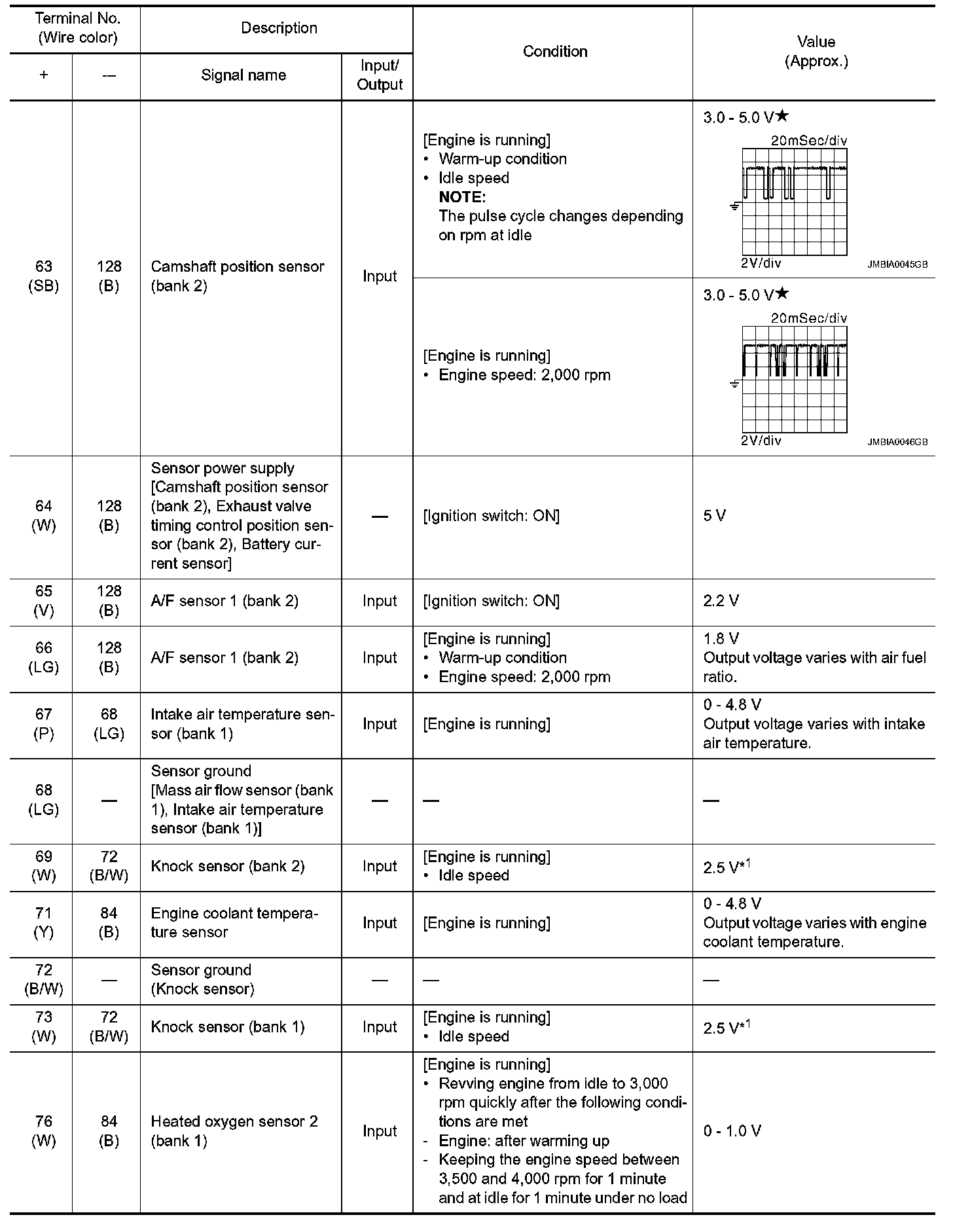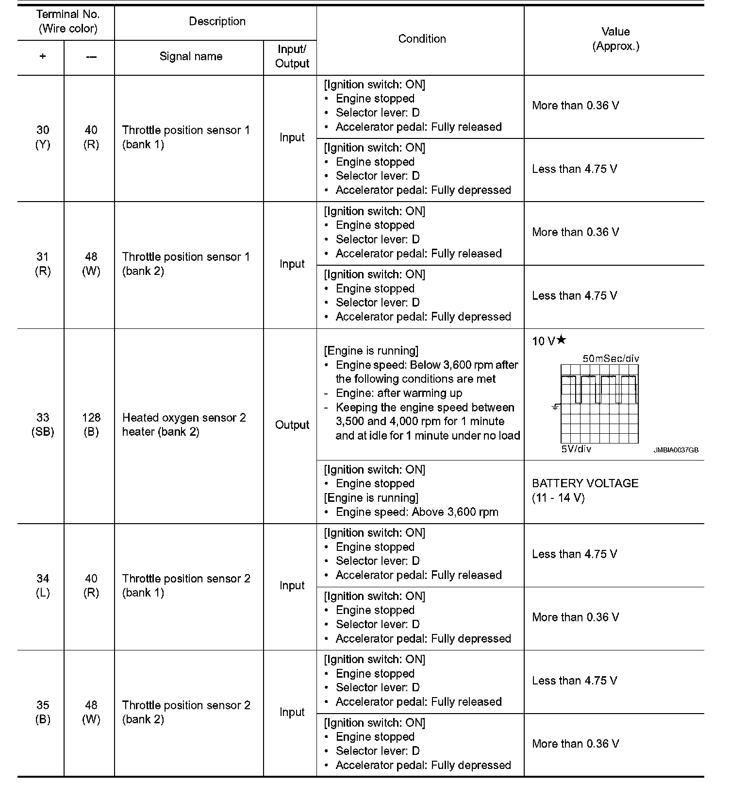 - Specification data are output/input values which are detected or supplied by the ECM at the connector.