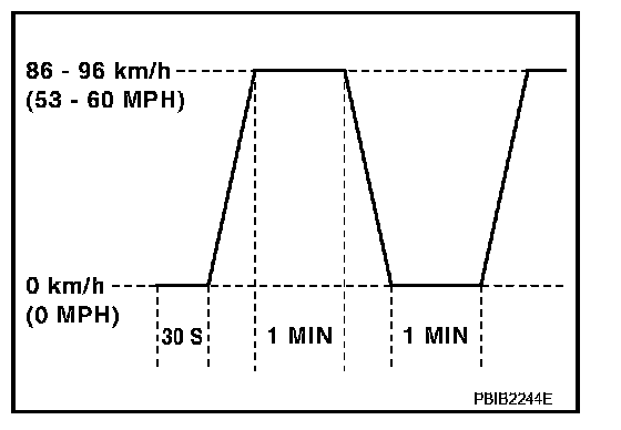 MPH), then release the accelerator pedal and keep it released for more than 10 seconds. Depress the accelerator pedal until vehicle speed is 90 km/h (56 MPH) again.