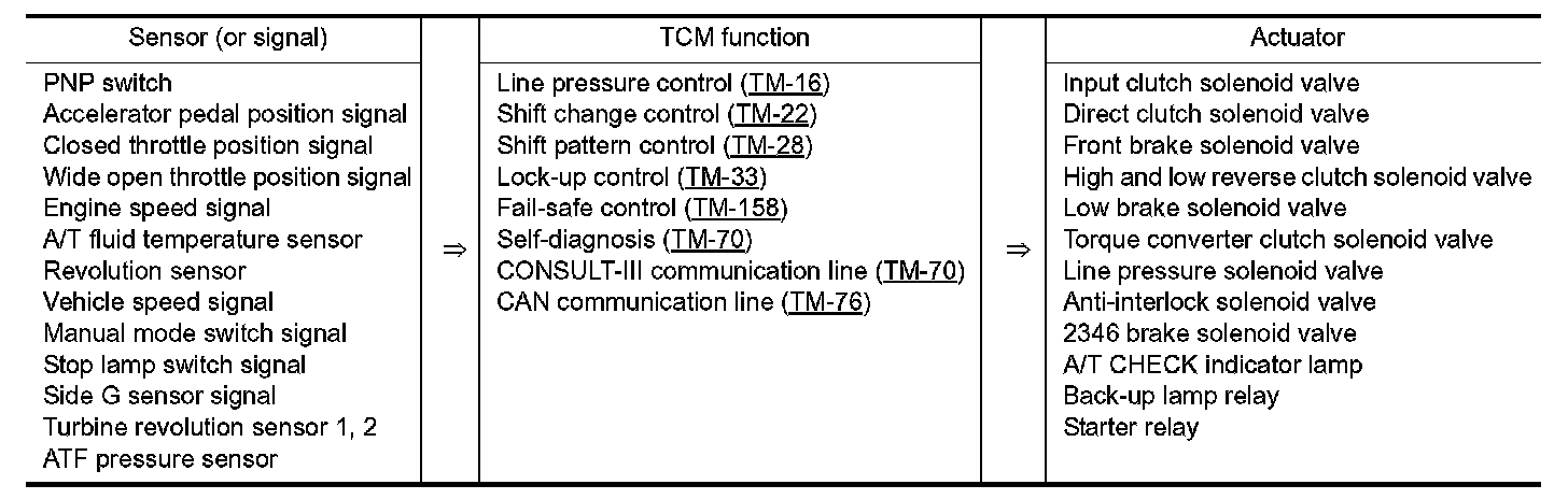 - The A/T senses vehicle operating conditions through various sensors or signals. It always controls the optimum shift position and reduces shifting and lock-up shocks.