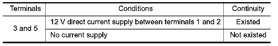 3. Check the continuity between cooling fan relay 1 terminals under the following conditions.