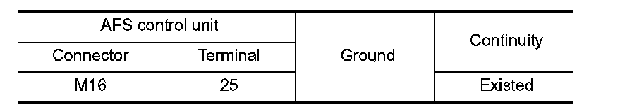 2. Check continuity between the AFS control unit harness connectors and the ground.