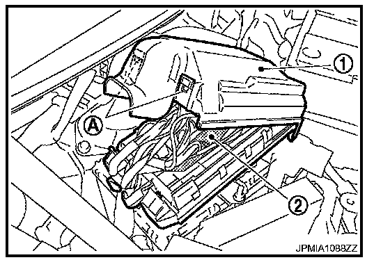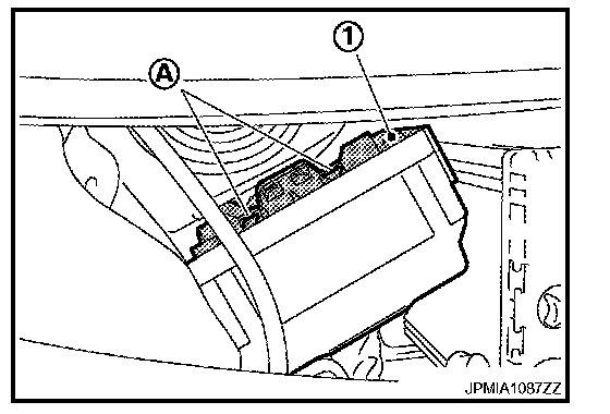 4. Remove the IPDM E/R cover A (1) while pressing the pawls (A) at the lower end of the IPDM E/R cover A.