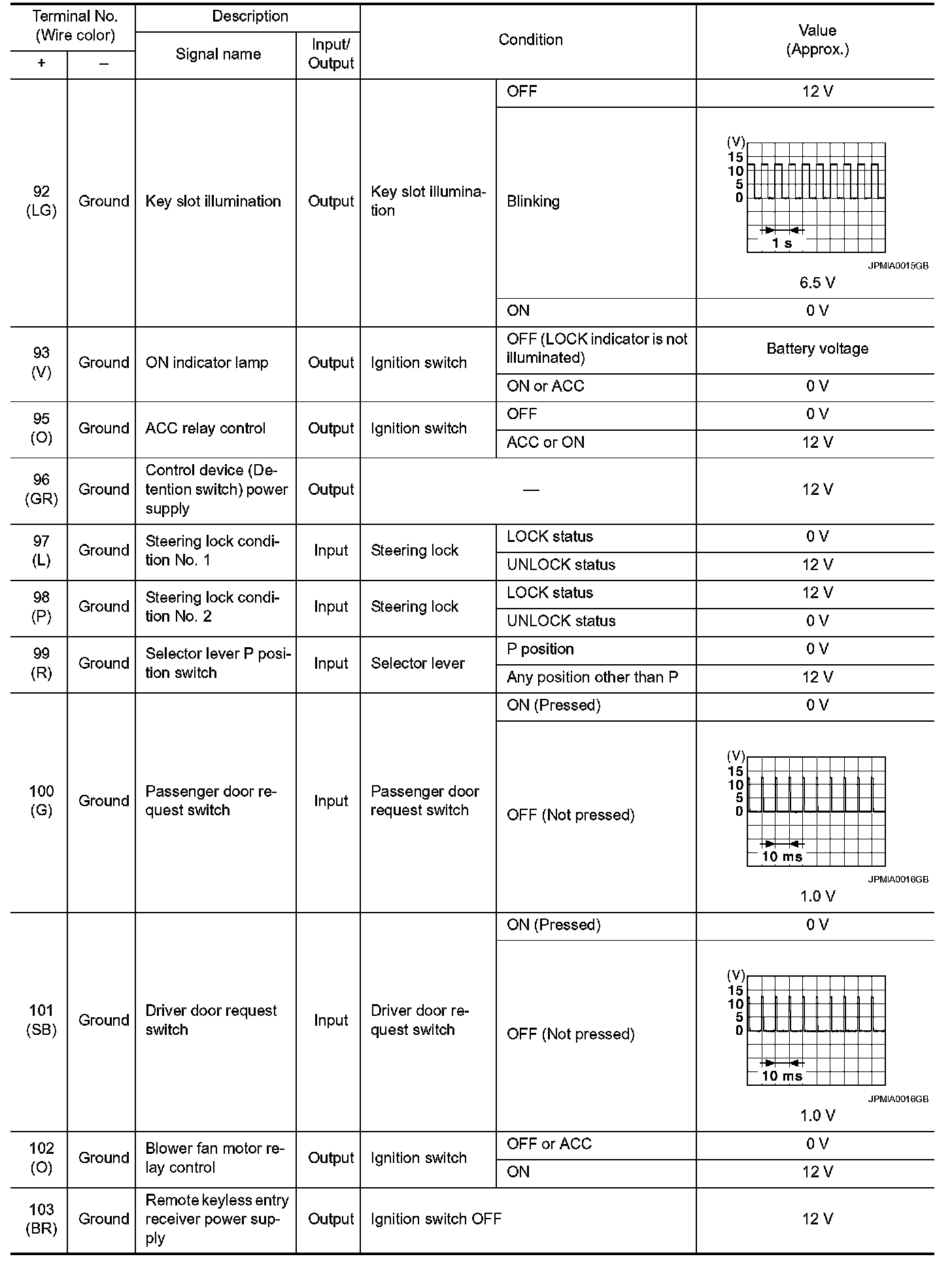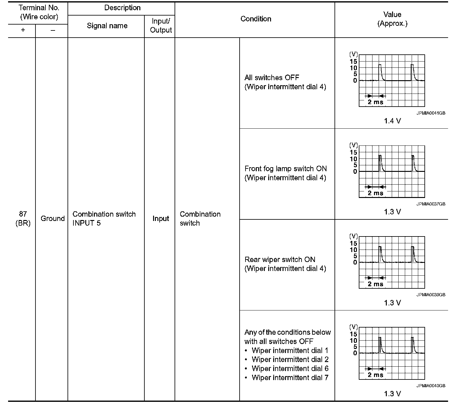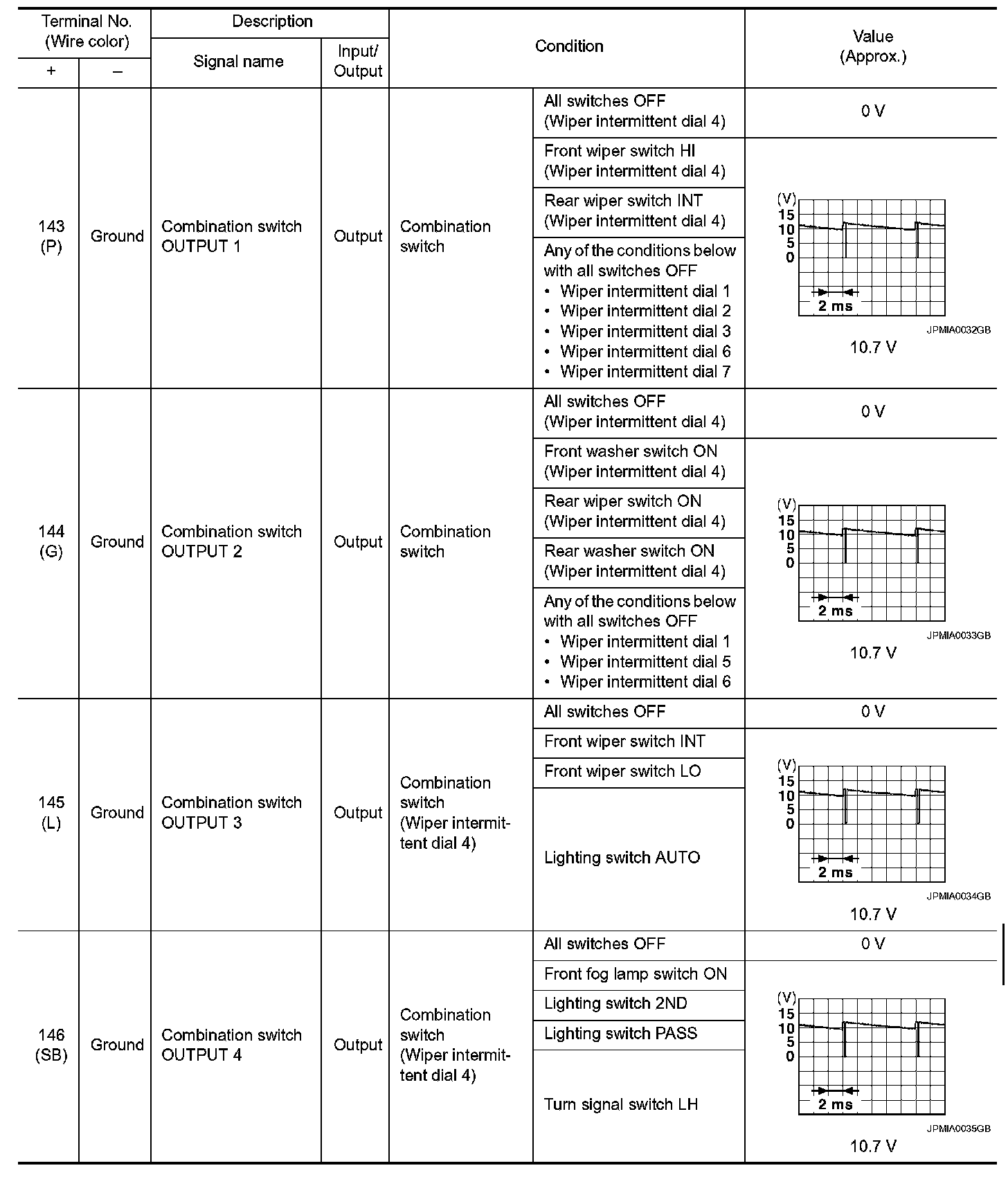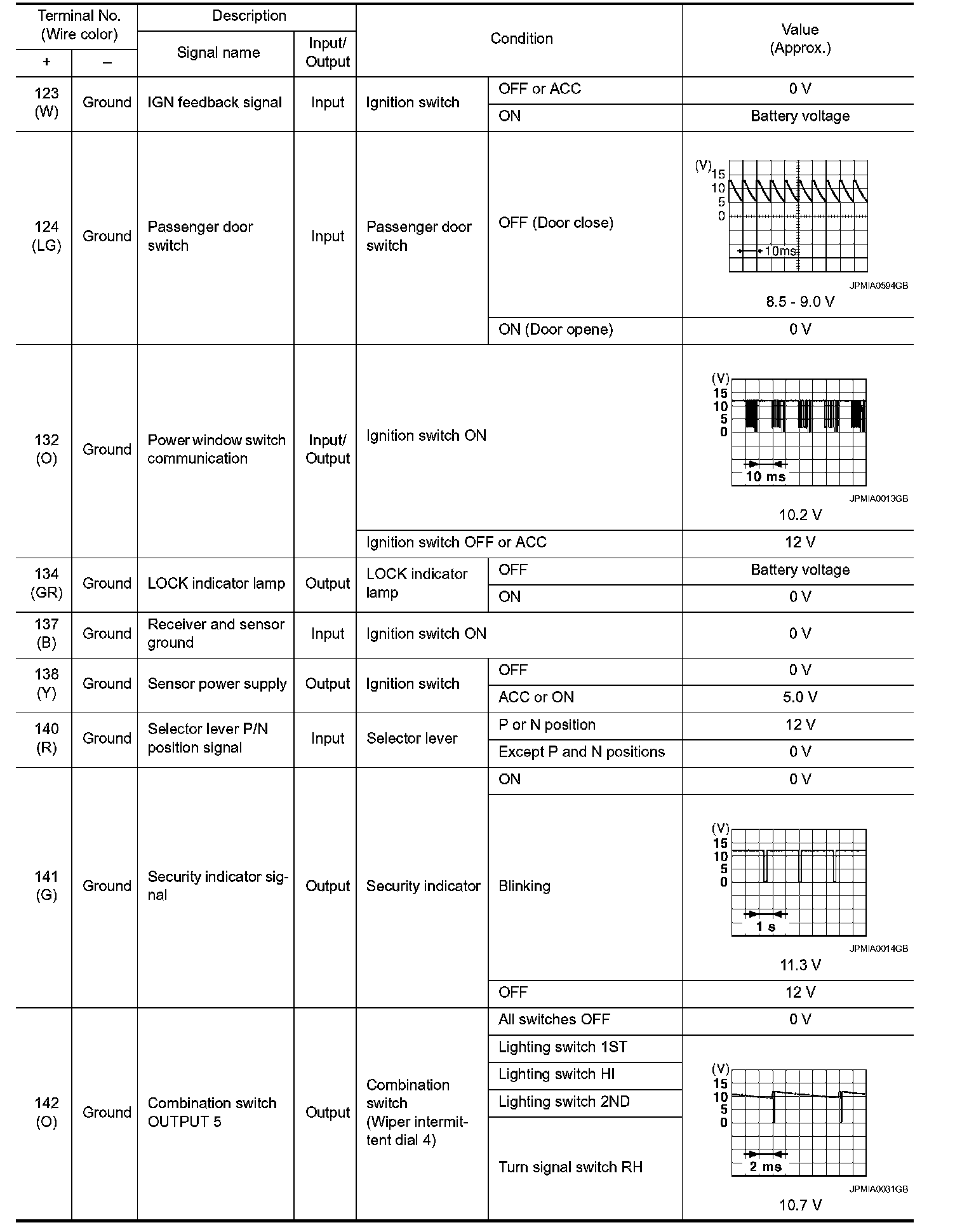 Pinout Values and Diagnostic Parameters