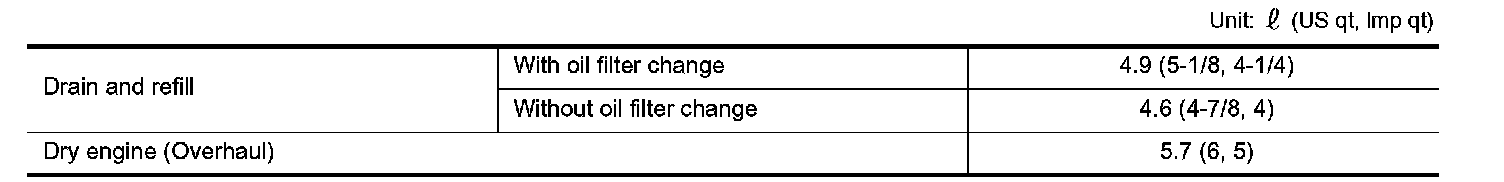 ENGINE OIL CAPACITY (APPROXIMATELY)
