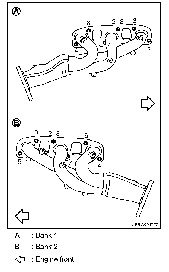 Tighten nuts No. 1 and 2 in two steps. The numerical order No. 7 and 8 shows second step.