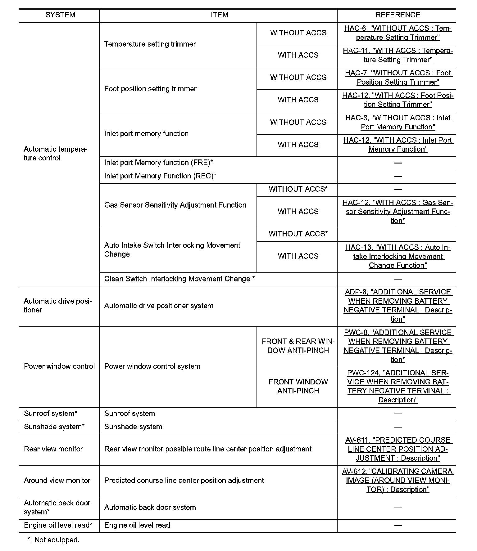 NEGATIVE TERMINAL : Required Procedure After Battery Disconnection