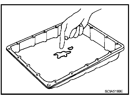 Check foreign materials in oil pan to help determine causes of malfunction. If the ATF is very dark, smells burned, or contains foreign particles, the frictional material (clutches, band) may need replacement. A tacky film that will not wipe clean indicates varnish build up.