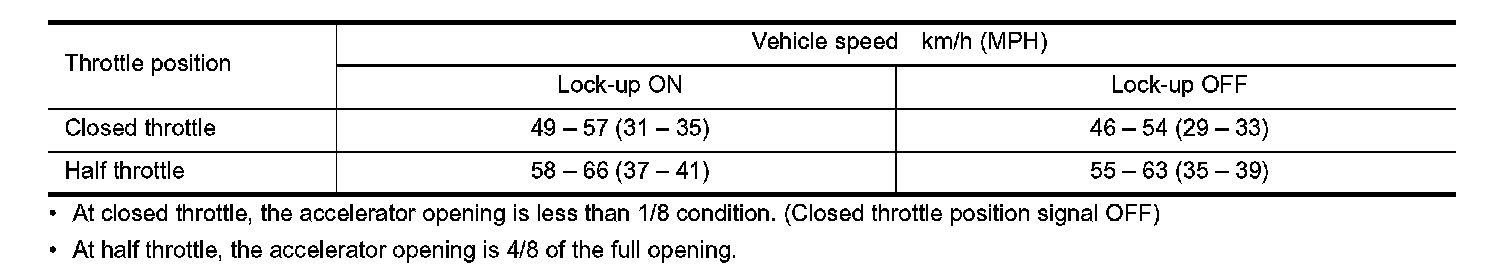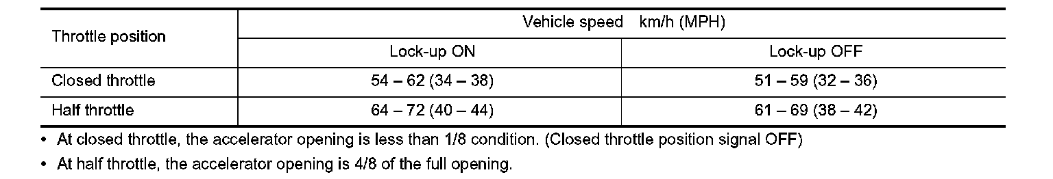 Vehicle Speed at Which Lock-up Occurs/Releases