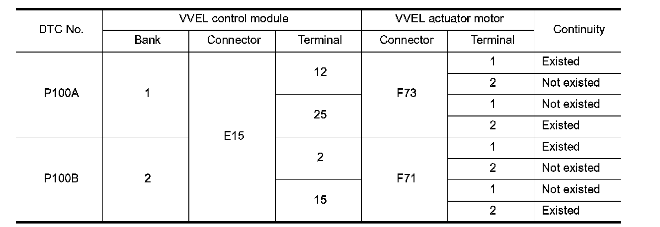 3. Check resistance between VVEL actuator motor terminals as per the following.