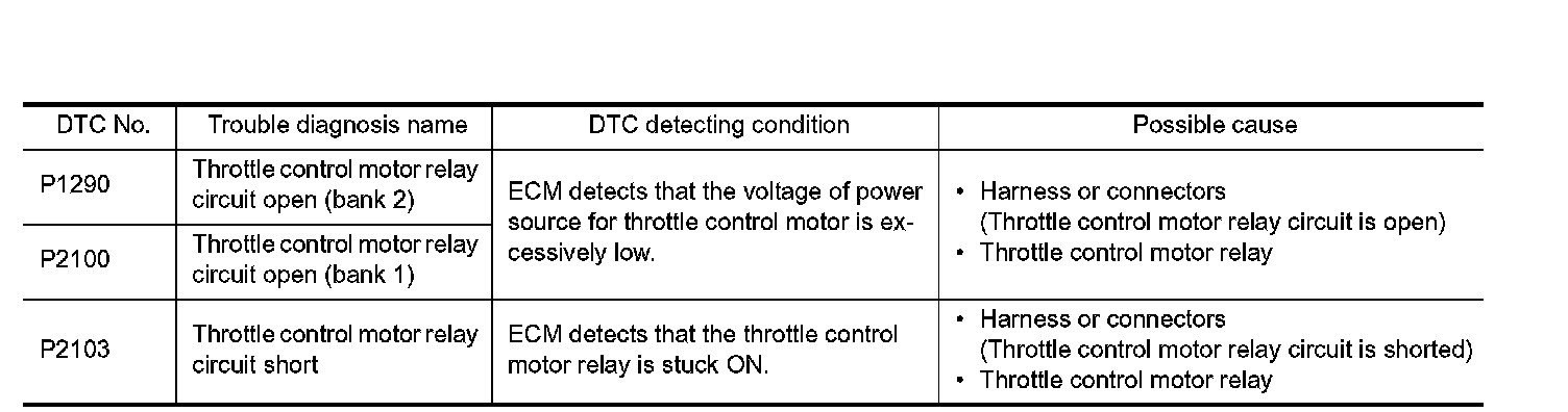 P1290, P2100, P2103 THROTTLE CONTROL MOTOR RELAY