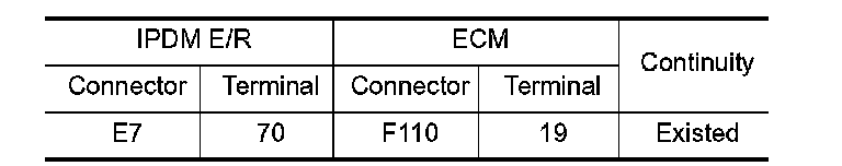 1. Check the continuity between IPDM E/R sensor harness connector and ECM harness connector.