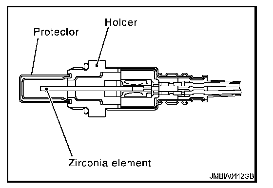Therefore, the A/F sensor 1 is able to indicate air fuel ratio by this electrode layer of current. In addition, a heater is integrated in the sensor to ensure the required operating temperature of approximately 800�C (1,472�F).